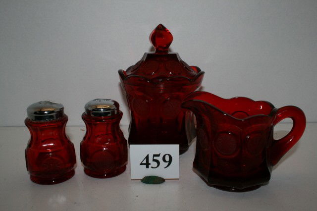 3 pc Lot Victorian Ruby Stained Glass Syrup Pitchers5 days Left3 pc Lot Consolidated Victorian Pigeon Blood Glass5 days LeftLot 2 Early Provincial Creamer & Sugar Bwl JAPANMar 04, 2026Lot Of Weighted Sterling Silver Three Piece Creamer, Sugar Bowl And Footed Bowl Set 4"X3"Mar 08, 20264 pc Lot Victorian U.S. Glass "Coin Glass"5 days Left11 pc Lot Ruby Stained Victorian Glass Victoria Pattern5 days Left5 pc Lot Riverside Ruby Stained Victoria Victorian Glass5 days Left4 pc Lot Ruby Stained Tarentum Ladder & Diamonds Cruet Shakers, Toothpick Holder6 days LeftFiesta Post 86 lot of 4 pieces:Mar 13, 20264 pc Lot Victorian Ruby Stained Glass Cruets5 days LeftL. G. Wright Hand Painted Cranberry Coin Dot Water Pitcher, 19th C. Hand Painted Decorated PitcherMar 16, 2026Avon 1876 Cape Cod Ruby Red Glassware Collection (Large Assortment)2 hrs LeftRussel Wright Lidded Sugar Bowl, Creamer, Saucer, PlatesMar 09, 2026FOSTORIA 'COIN' PIECES: JELLY DISH, RUBY RED WEDDING BOWL, & MORE3 days LeftSterling Coffee and Tea Set by Reed & BartonMar 10, 2026Fostoria American Clear Glass Set Salt Cellar Pitcher Spoons and Cups Lot of TenMar 04, 2026