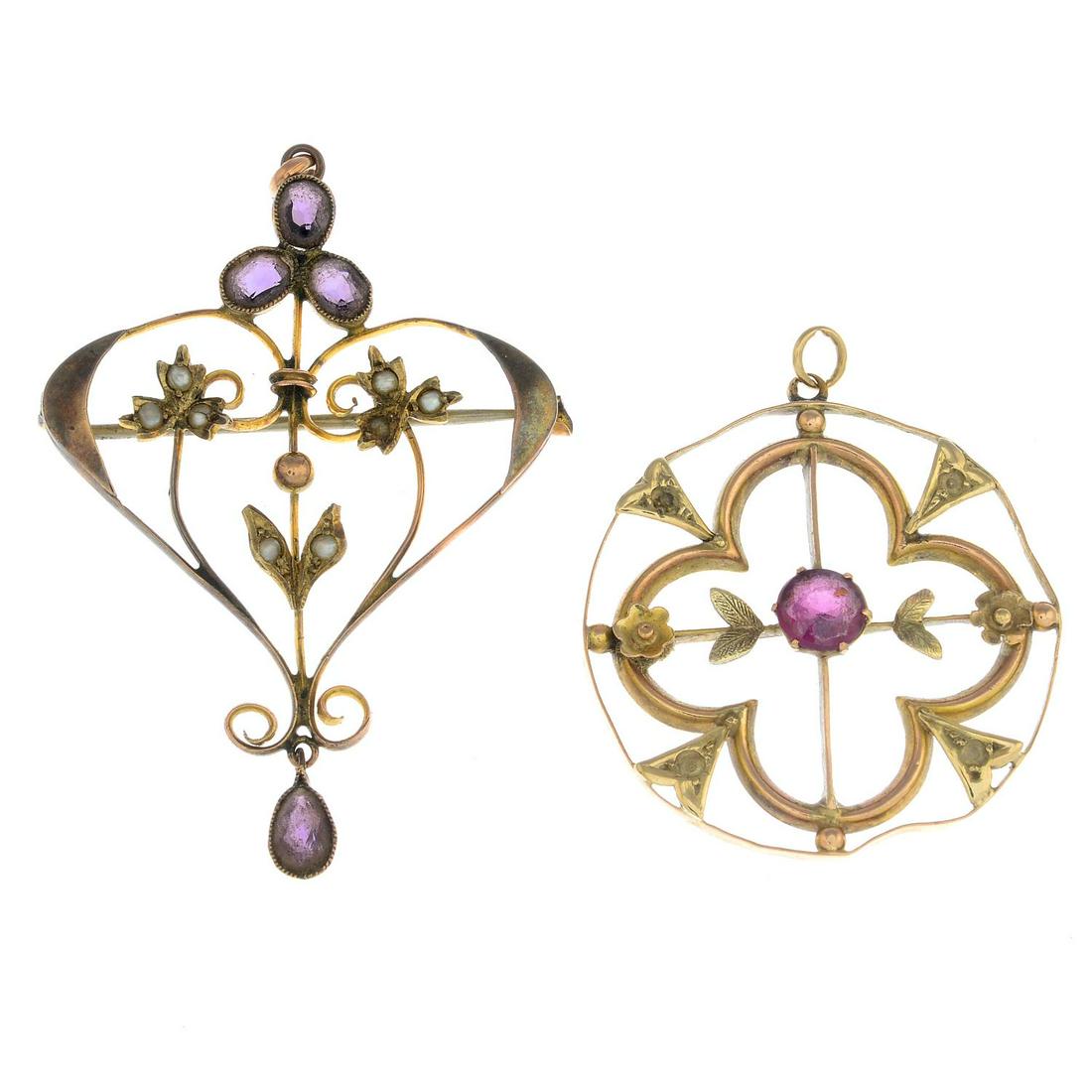 Four 15ct and 9ct gold gem-set and paste