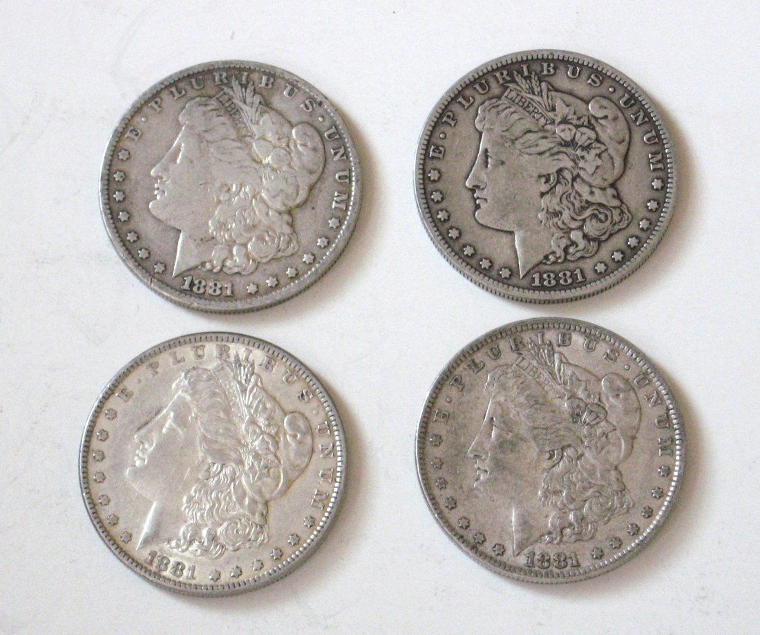 Four 1881 Morgan Silver Dollars,