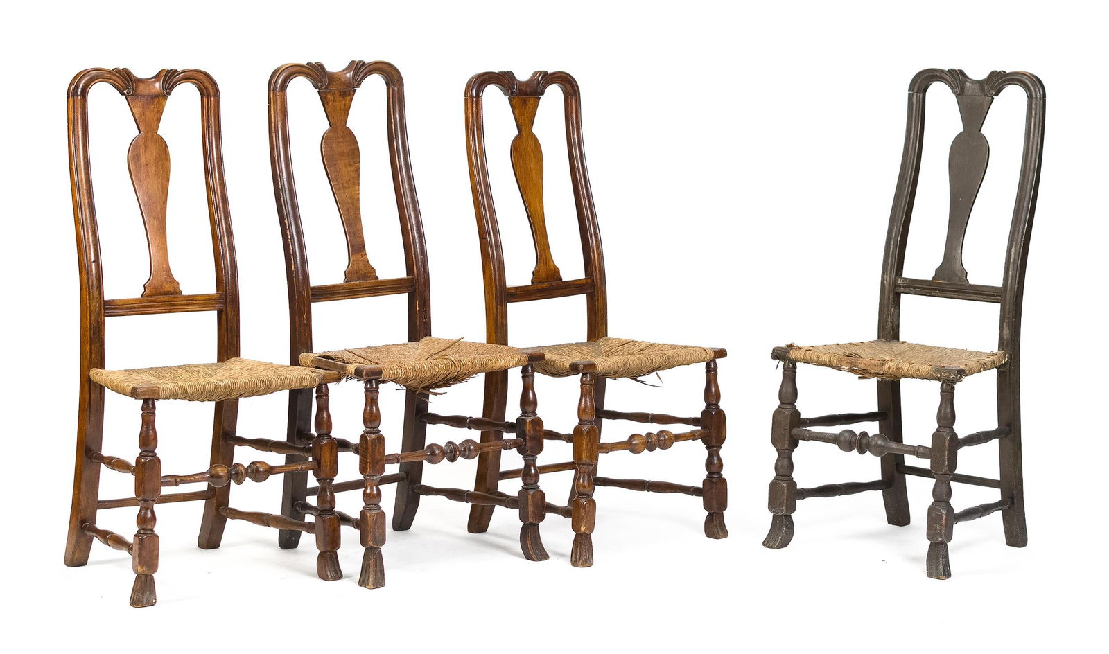FOUR 18TH C. NEWBURY SIDE CHAIRS.