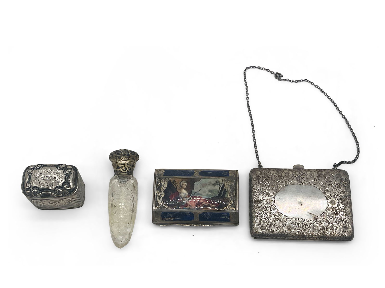 Swarovsky Miniatures & Others Gilt Boxes 7pc LOT5 days LeftLot of sterling silver dresser accessories, including various covered glass jars and scent bottles.Mar 01, 2026Estate Lot of 5 Antique Chinese & Bronze: Box, Bottle, Tray, Vase & Leather WalletMar 15, 2026GROUP LOT OF SILVER ITEMS4 days LeftMostly Sterling Silver Jewelry, 14K Nib, & More.7 days LeftMeriden, Imperial Silver & Others Assorted 9pc LOT5 days LeftLot of Five Sterling Silver & Crystal Powder JarsMar 04, 202619th/20th Century Women's Vanity Make-up Sterling Silver Lot (6)Mar 28, 2026Various Items4 days LeftSilver Items, Russia4 days LeftGroup of Smoking & Other AccessoriesMar 03, 2026Silver Items, Various Origins4 days LeftSilver Boxes, Various Origins4 days Left4 English Sterling VinaigrettesMar 14, 2026Sterling Silver Scent Bottles & PillboxMar 17, 20264 Miniature Silver BoxesMar 14, 2026