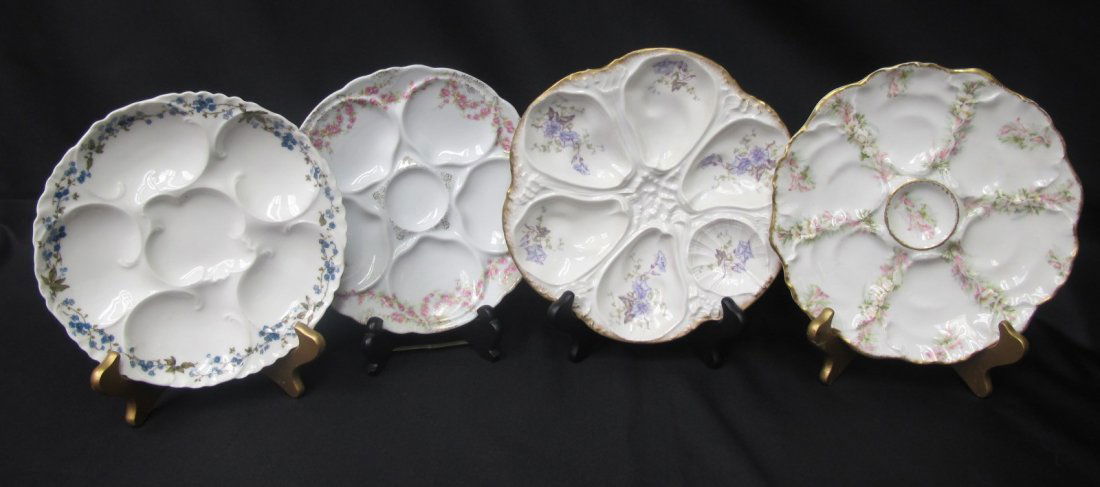 Four (4) Assorted Limoges Oyster/Clam Plates
