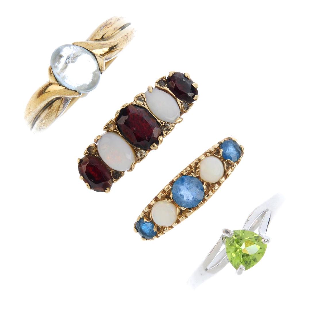 Four 9ct gold gem-set ring. To include a peridot