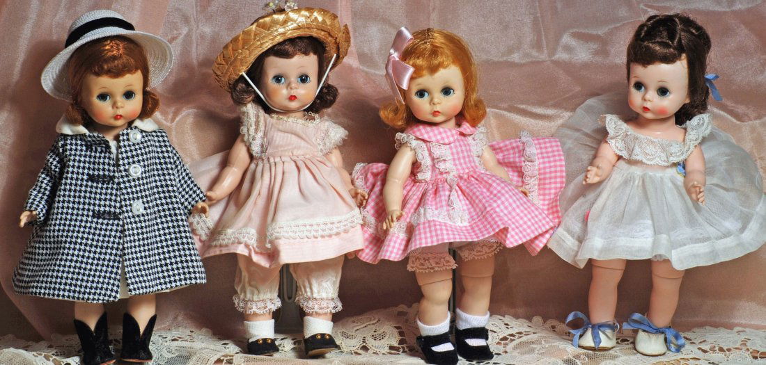 FOUR ALEXANDER-KINS HARD PLASTIC DOLLS.