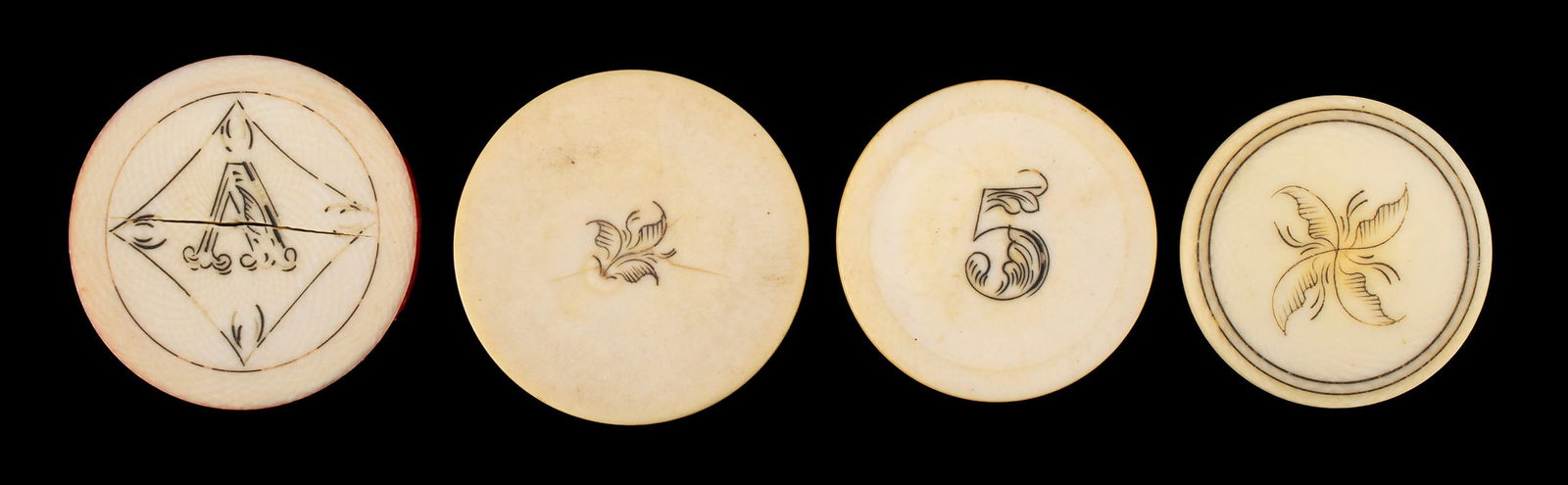 FOUR AMERICAN ANTIQUE POKER CHIPS