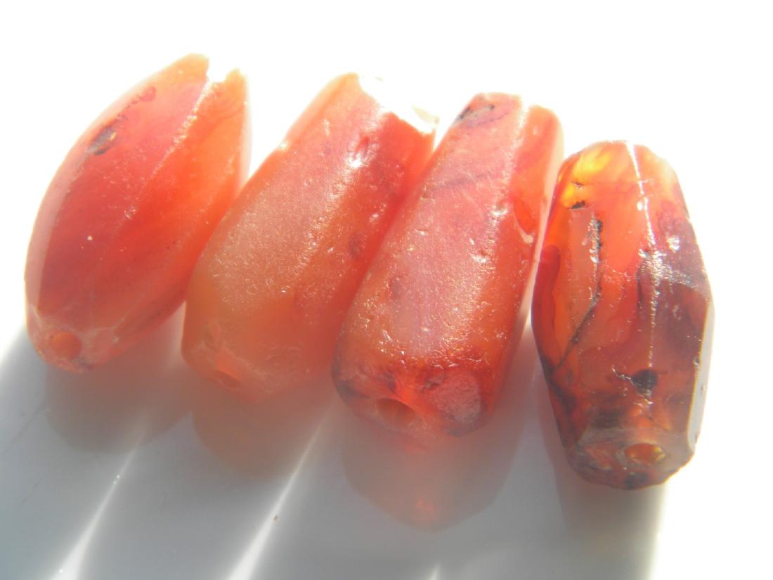 Four Ancient Western Asiatic Decorated Carnelian dZi BeadsDimension: 7.3x6.7x3mm New - Produced within the last 20 years Vintage - Over 20 years of age but less than 100 years of age Antique - Over 100 years of age but less than 500 years of age Ancient - OvSee Sold Price