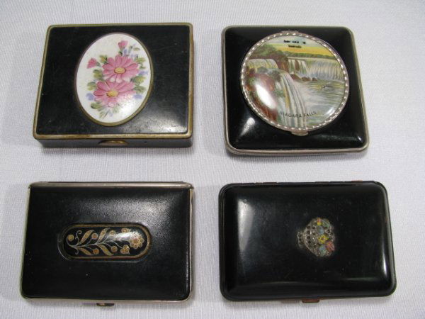 FOUR ASSORTED BLACK ENAMEL COMPACTS
