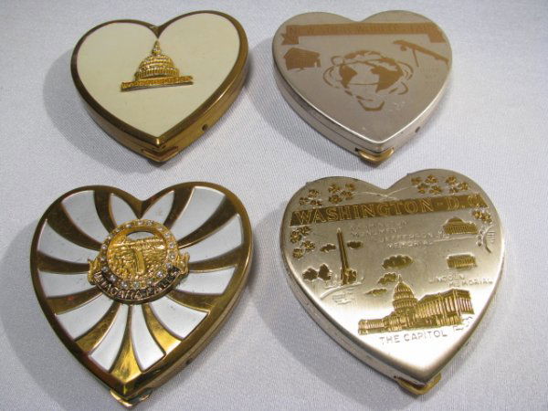 FOUR ASSORTED HEART SHAPED SOUVENIR COMPACTS