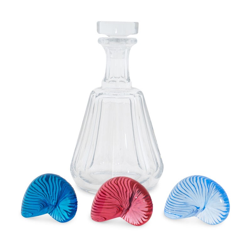SoldFour Baccarat Glass Articles Four Baccarat Glass Articles France, 20th Century Each bearing Baccarat acid-etched trademarks. Small decanter, height 6 1/2 inches. Nautilus shell, height 1 inches.See Sold Price