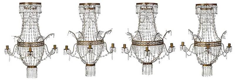 Four Brass and Crystal Wall Sconces