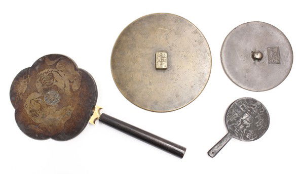 Four Chinese Bronze Circular and Handled Mirrors