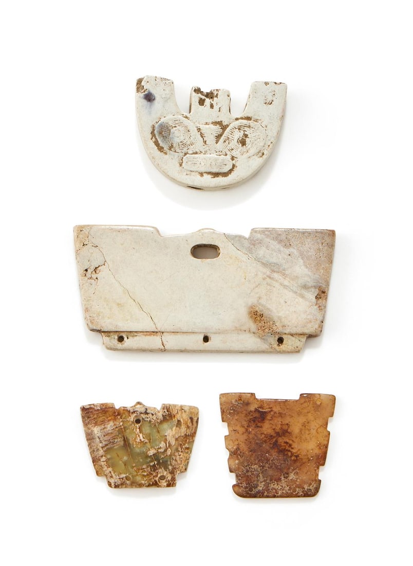 A GROUP LOT WITH FOUR RARE JADE AND BRONZE HARNESS ELEMENTS, EASTERN ZHOU DYNASTYMar 12, 2026RARE GROUP OF THREE JADE ORNAMENTSHONGSHAN CULTURE, NEOLITHIC PERIOD (C. 3500-3000 BC)3 days LeftSIX WHITE JADE STONE PIECES IN CELADON COLOR3 days LeftA FOUR-PIECE BEIGE AND BROWN JADE SWORD FITTING SET, WESTERN HAN DYNASTYMar 12, 2026Collection of Six Carved Jade PendantsFeb 28, 2026FOUR CHINESE CARVED JADE ITEMS.2 days Left6 Chinese Carved Celadon Jade FiguresMar 14, 2026A SET OF ANCIENT JADE LIANGZHU CULTURE ARTIFACTSMar 07, 20266 Chinese Carved Celadon Jade FiguresMar 14, 2026Chinese Carved Stone Sculptures, 4Apr 14, 2026A RARE AND COMPLETE SET OF FOUR WHITE JADE 'SWORD FITTINGS' WARRING STATES TO HAN DYNASTY (4TH3 days LeftThree Chinese Soapstone Carvings GroupFeb 28, 20264 Vintage Chinese Carved Jade PendantsFeb 27, 2026Ancient jade artifacts, 4 jade dragon hooks5 days LeftA SET OF ANCIENT JADE SWORD FITTINGSFeb 28, 2026PRE-COLUMBIAN GROUP OF THREE MAYAN CARVED SHELL PENDANTS4 days Left
