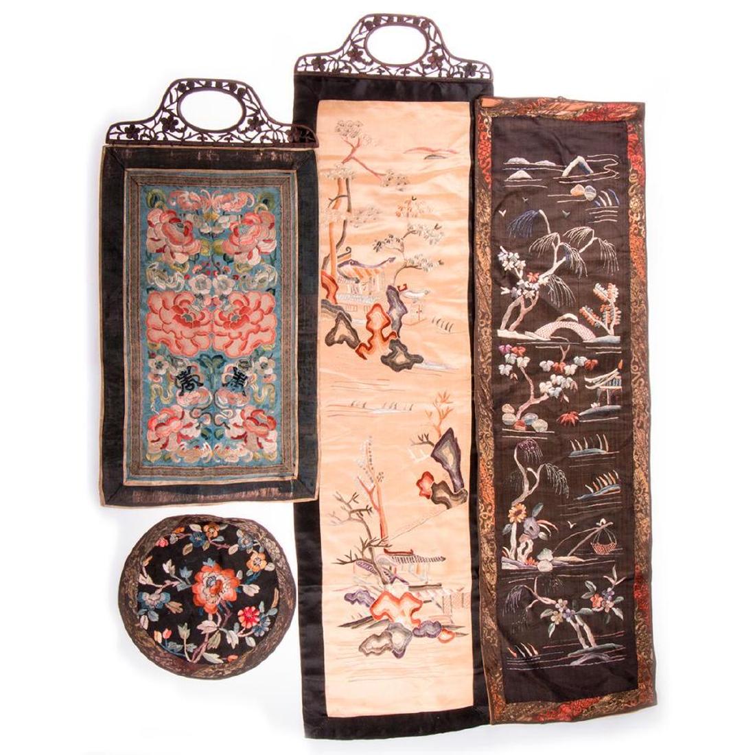 Four Chinese embroideries.