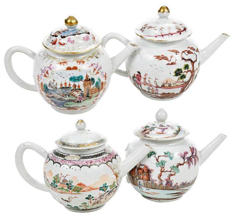 Four Chinese Export Teapots with Landscapes