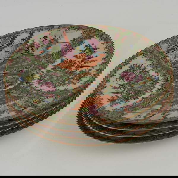 Four Chinese Rose Canton Plates