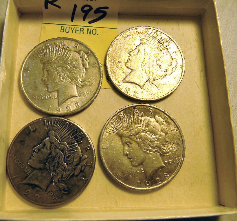 Four circulated Peace silver dollars, 1923