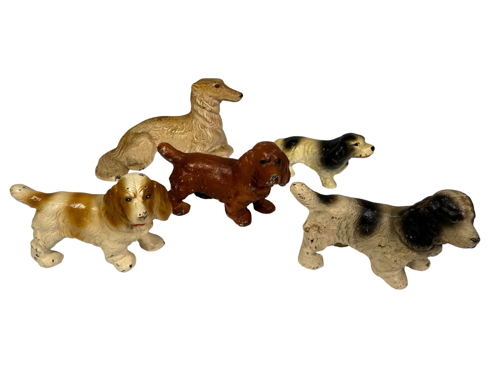 Four Cocker Spaniel / Wolfhound Cast Iron Paperweights