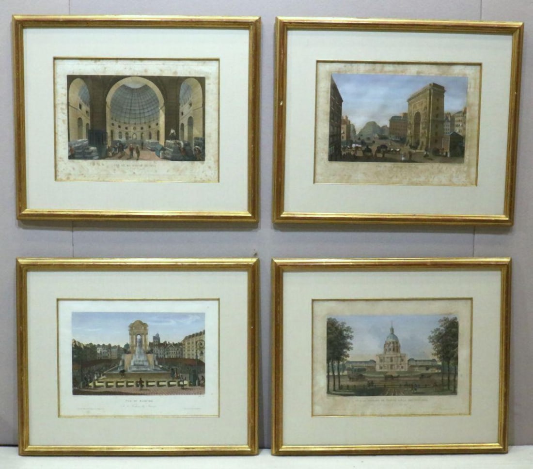 Four Colored Engravings on Paper