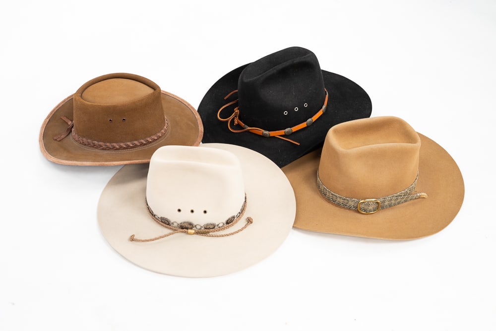 FOUR COWBOY HATS.