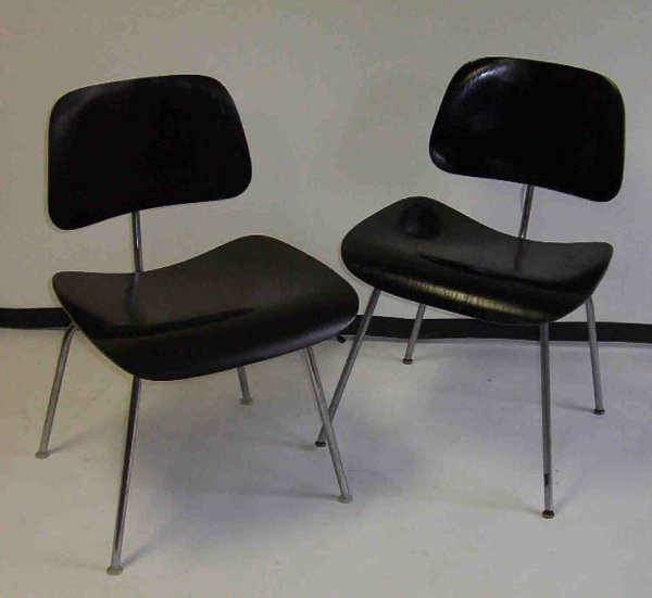 FOUR EAMES DCM CHAIRS In black finish.