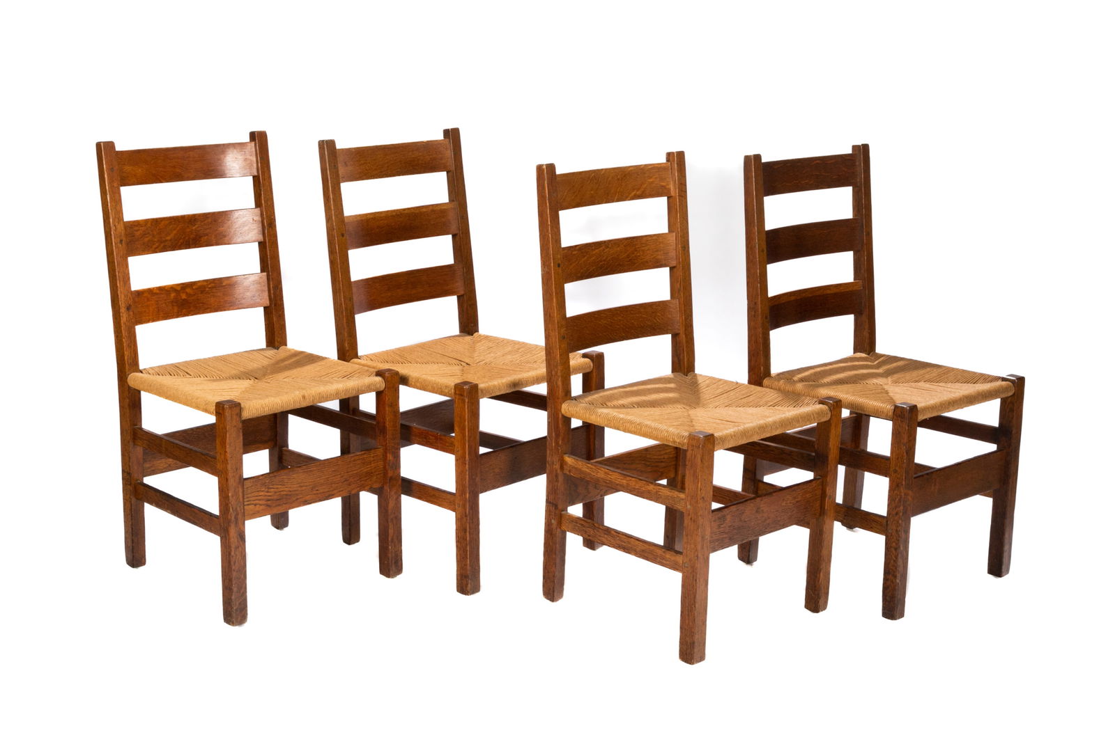 FOUR EARLY GUSTAV STICKLEY DINING CHAIRS