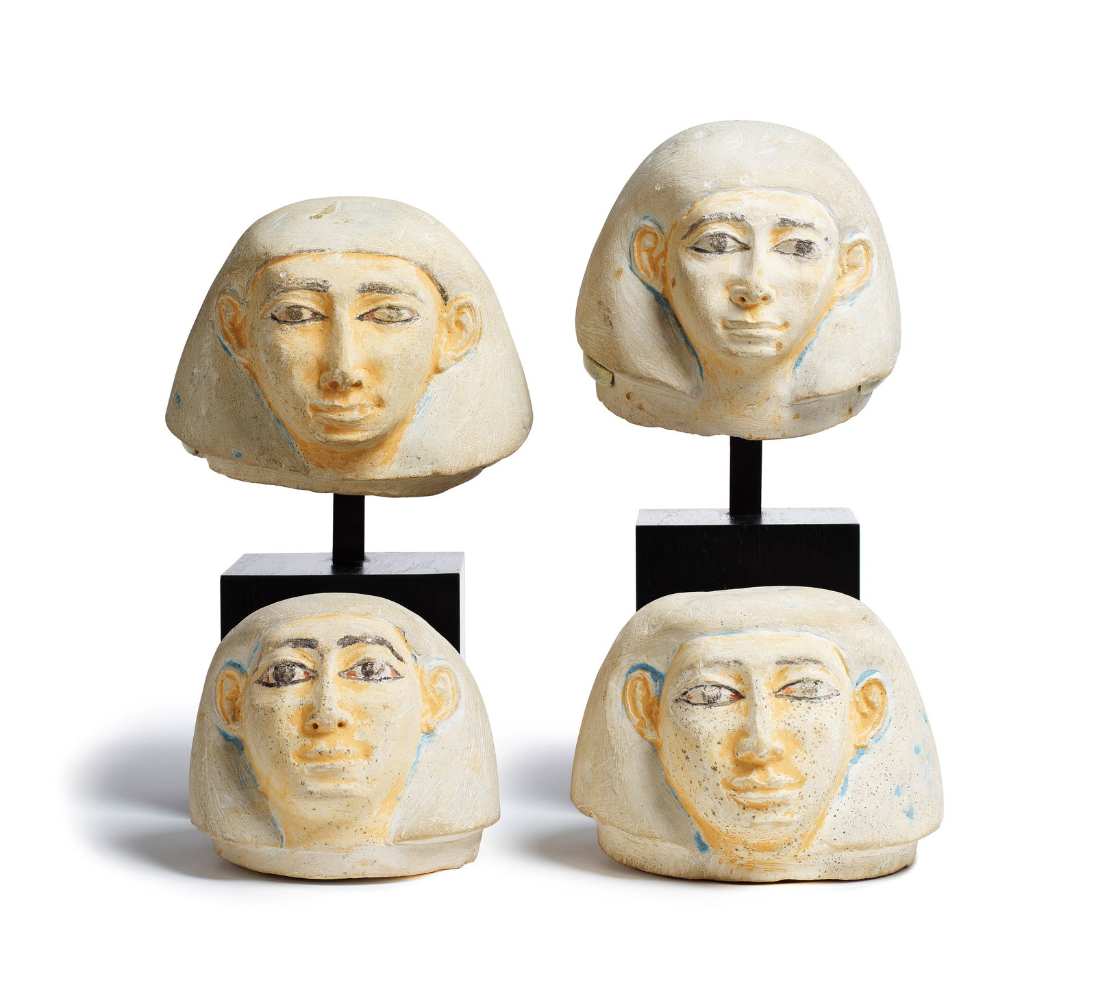 Four Egyptian limestone human-headed canopic jar lids
