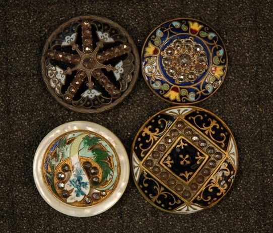 FOUR ENAMELED BUTTONS with CUT STEELS. All large: Th