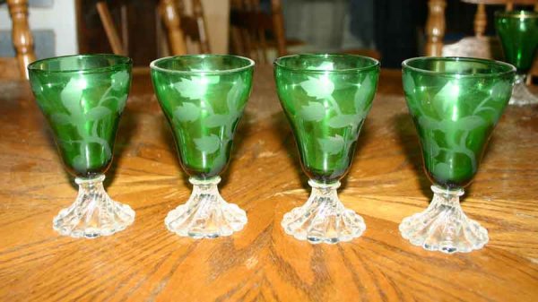 Four Etched Green Glasses