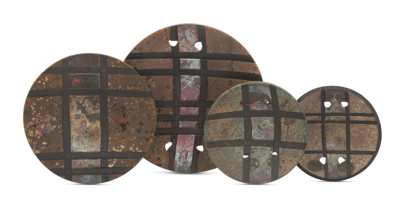 Four Eugene Esquierdo Pottery Raku-Glazed Dishes