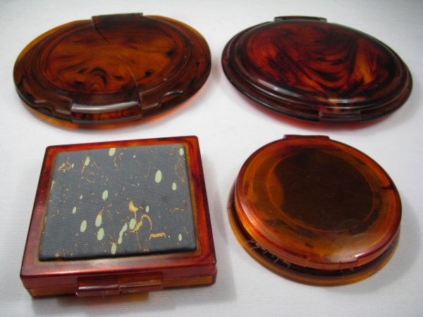 FOUR FAUX SHELL MARBLEIZED PLASTIC COMPACTS