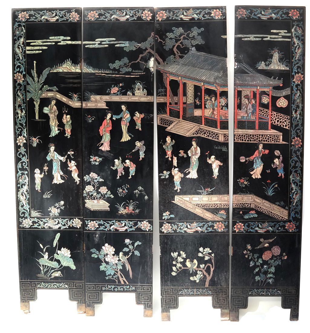 4 Fold Chinese Lacquer Screen w/Stone Applique Figures 6' H X 18" W Ea. PanelGeorge Cole Auctions4.6(414)$1005 days Left