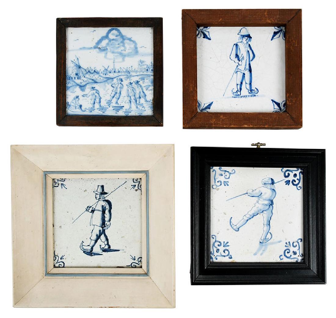 Four Framed Dutch Delft Skating Tiles
