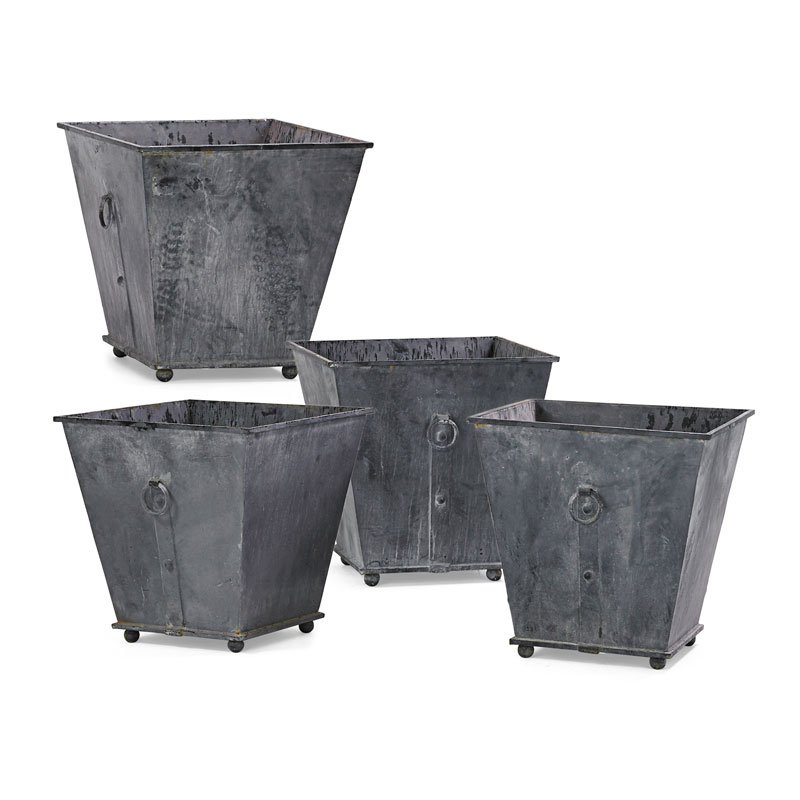 FOUR GALVANIZED STEEL PLANTERS