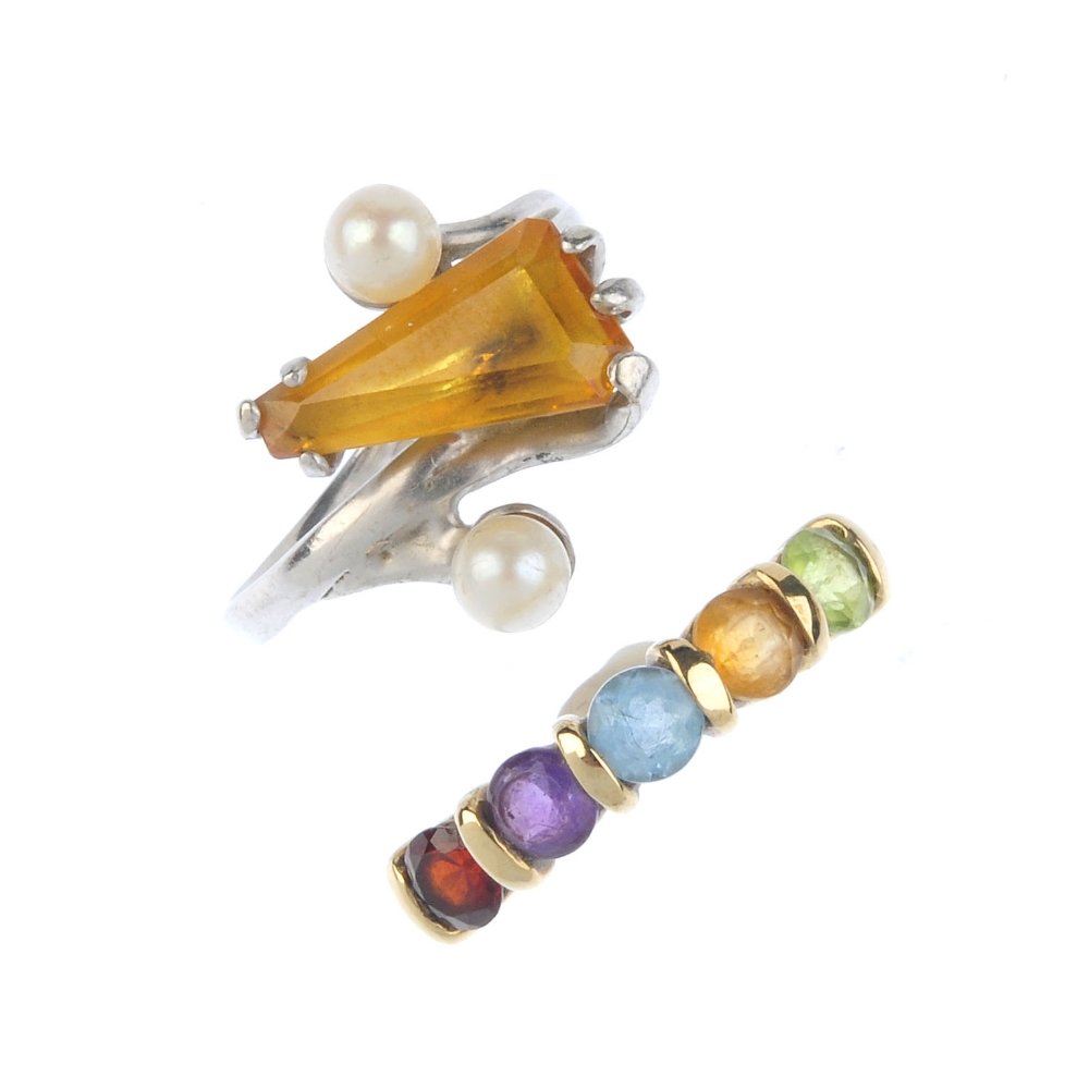 Four gem-set dress rings. To include an oval-shape ruby