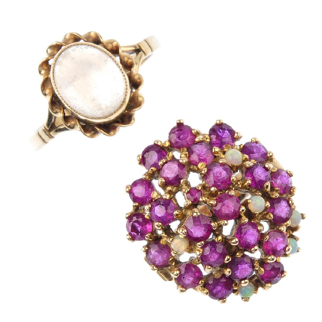 Four gem-set rings. To include a 9ct gold ruby cluster