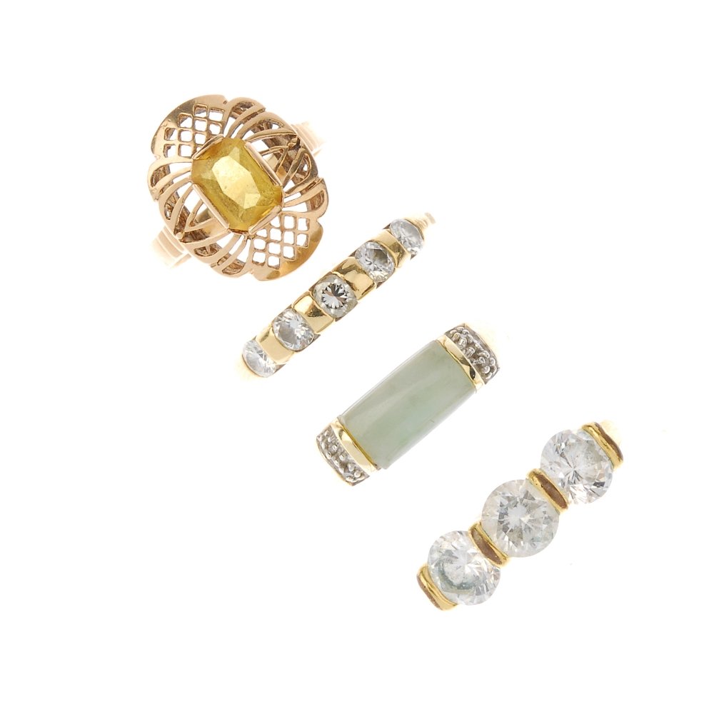 Four gem-set rings. To include a brilliant-cut diamond