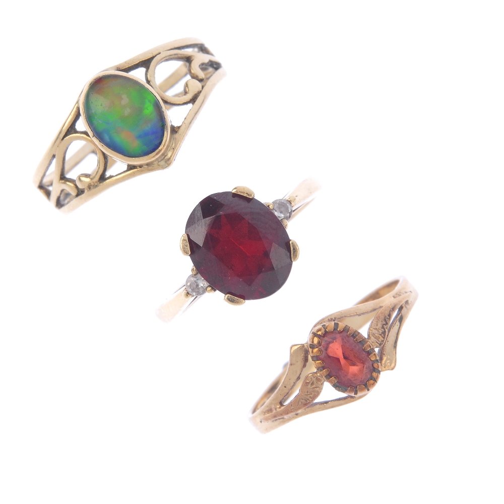 Four gem-set rings. To include a garnet single-stone