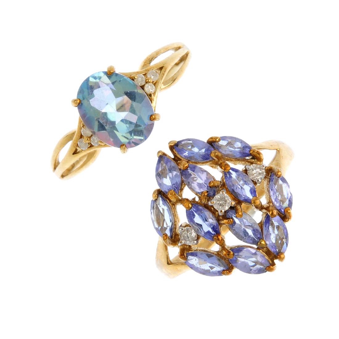 Four gem-set rings. To include a ruby dress ring, a 9ct