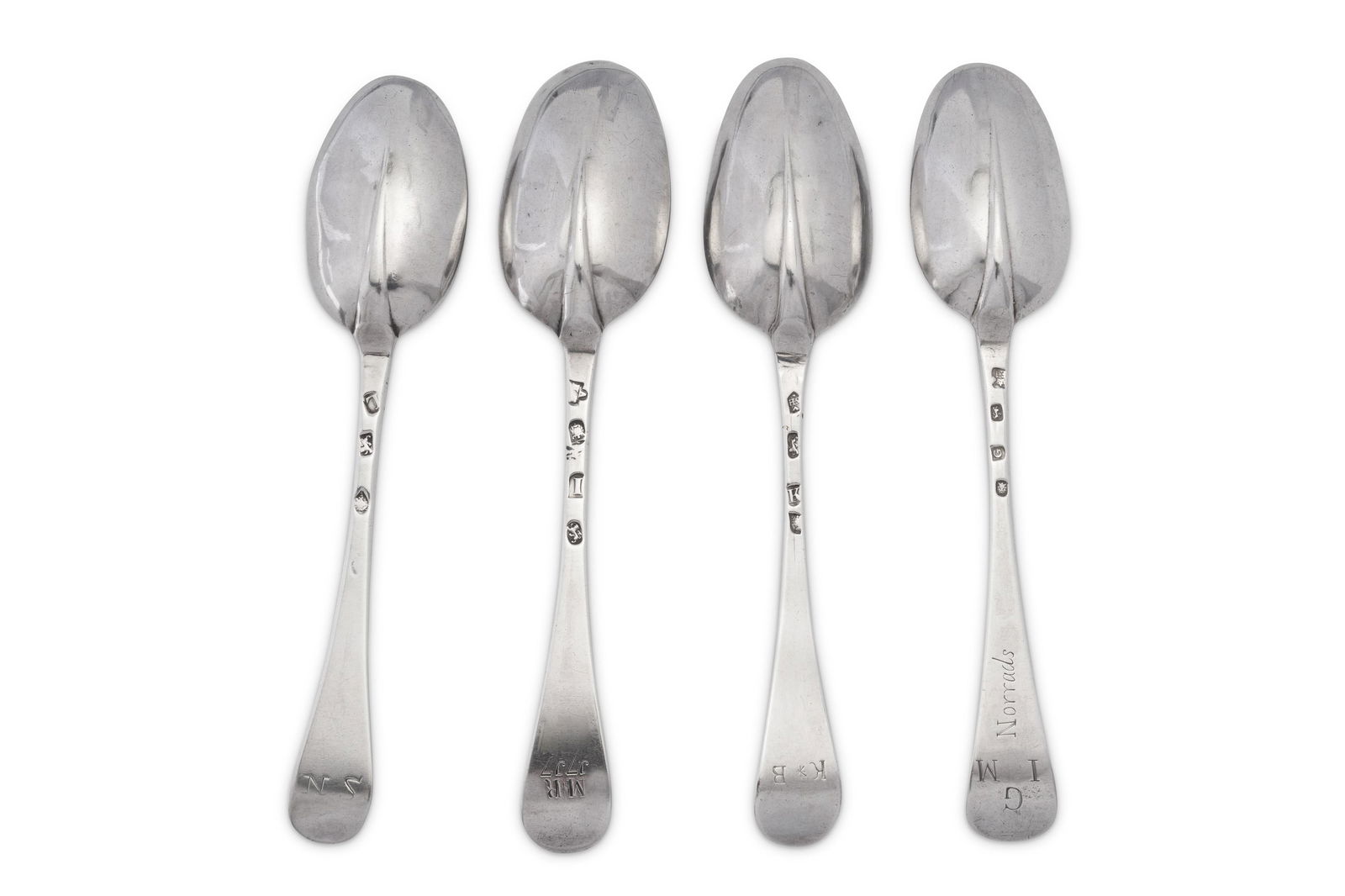 Four George I sterling silver tablespoons