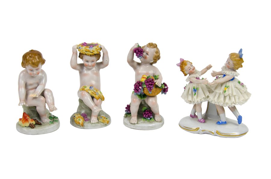 FOUR GERMAN PORCELAIN FIGURES, SITZENDORF