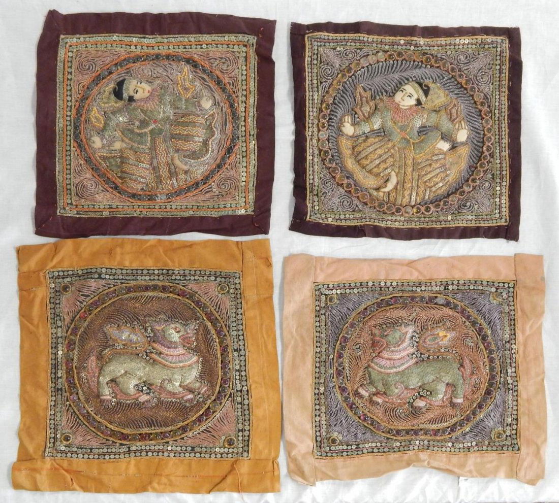 FOUR GOLD AND SILVER THREAD THAI TAPESTRIES