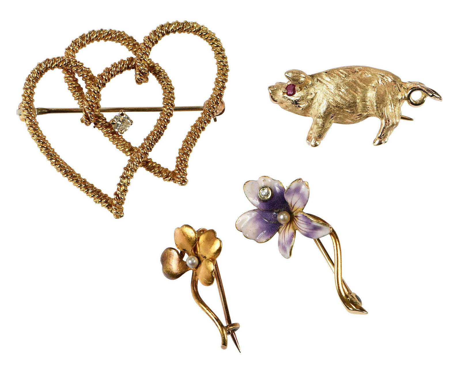 Four Gold Brooches