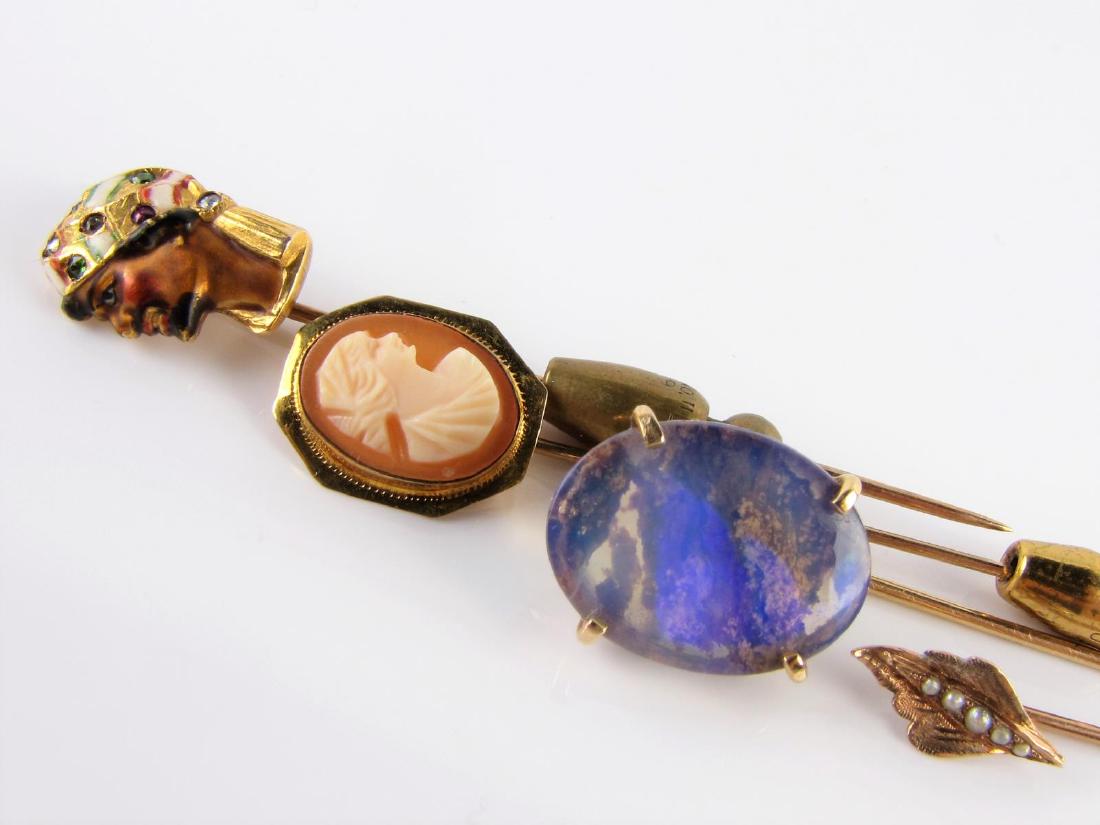 A lot of three antique 18 kt gold stick pins6 days LeftLot of Antique JewleryMar 02, 2026Lot of Five Vintage Gold-Tone BroochesFeb 27, 2026ASST. VICT./CONTEMPORARY GOLD STICK PINS/EARRINGS, ETC.3 days LeftVintage Unmarked Gold Tone Floral Leaf Rhinestones AB Crystals Brooch Pins9 hrs Left(2) Early 14K Yellow Gold StickpinsFeb 28, 2026(3) 14K Gold Stick Pins (Carved Jade, Amber, Dia.)Feb 28, 2026(8) 14K & 10K Gold Pins & StickpinsFeb 28, 20264 Antique 10K Yellow Gold StickpinsFeb 28, 2026Four Antique 10K Gem Set Stick PinsFeb 28, 2026PAIR OF 14K ANTIQUE GOLD STICK PINS 2.8gFeb 25, 2026VINTAGE 14K YELLOW GOLD LADIES SMALL TRIPLE CAMEO BROOCH PINMar 19, 2026A group of brooches and stick pins,Feb 25, 2026A small group of gold jewellery,Feb 25, 2026ANTIQUE 18K YELLOW GOLD UMBRELLA LADIES BROOCHMar 07, 2026Two Antique Gold Tone Stick Pins including an Art Nouveau Gibson Girl GOLDMar 12, 2026
