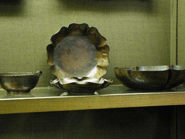 Four hammered copper bowls
