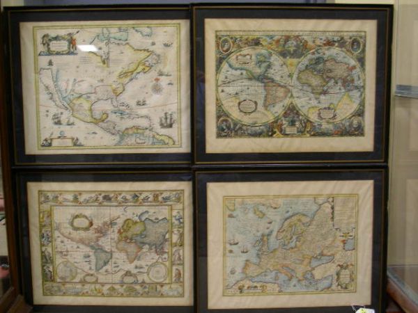 FOUR HAND COLORED ENGRAVED OLD WORLD MAP MAPS