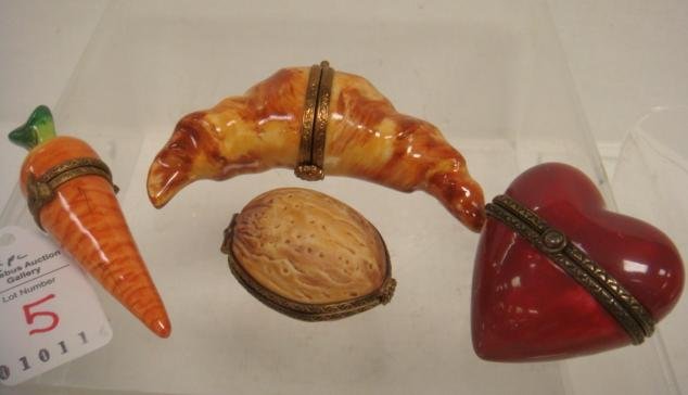 Four Hand painted LIMOGES Boxes Heart Healthy Theme: