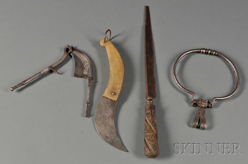 Four Iron Implements, a bone-handled Navaja with e