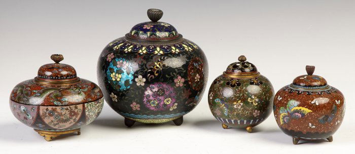Set of Four Cloison Enamel Vases with Lidded Ginger Jar; Chinese StyleLux et Umbra LLC$1006 days Left