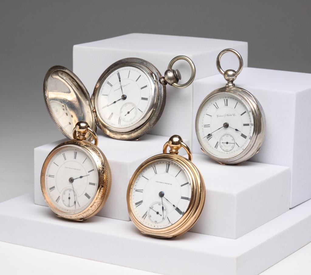 FOUR KEY WIND AND SET POCKET WATCHES.