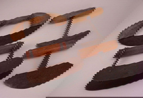 Four Kitchen Chopper Tools W/wood Handles. 5 1/2"